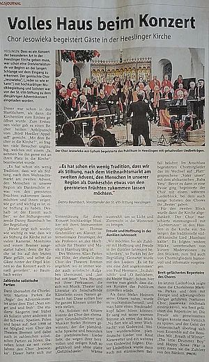 [Zeitungsbericht aus dem Sonntagsjournal der Zevener Zeitung zu unserem Adventskonzert 2024 vom 08. Dezember]